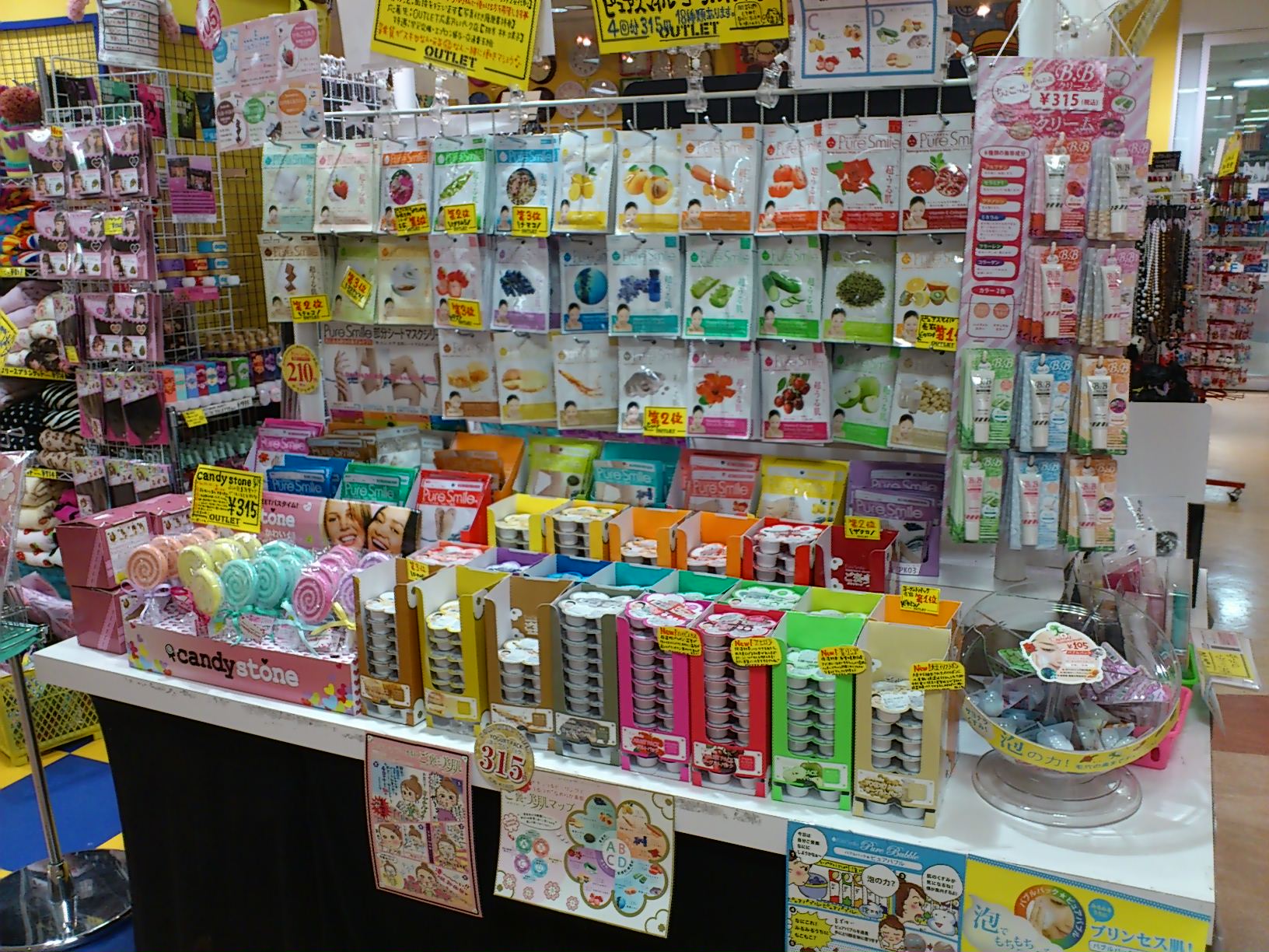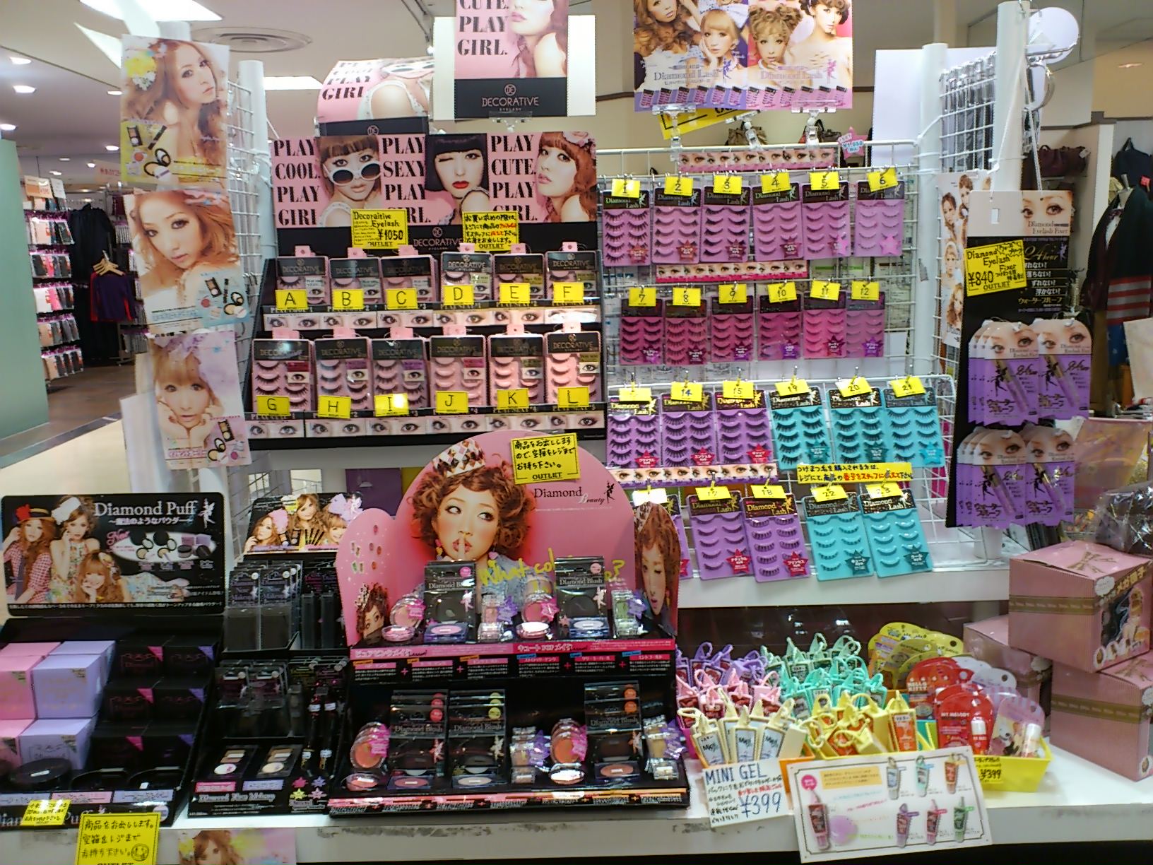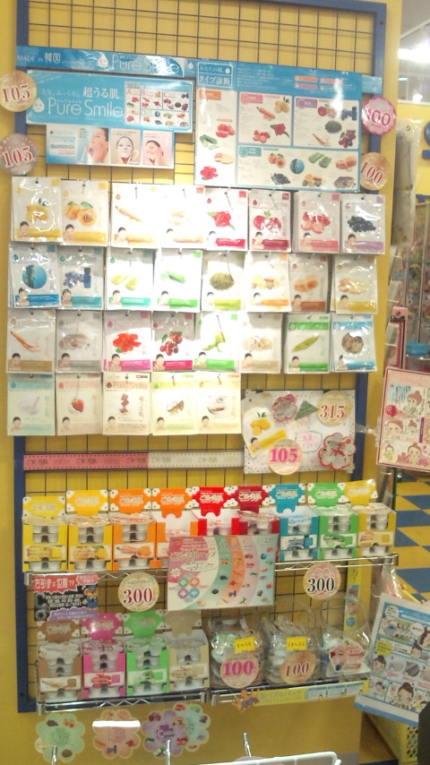 女子力UP↑のパック(105円)やつけまつげ(1050円)は、特に色々な種類から選べるので