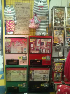 さっそく、ヨコシマ親子が来店して、キャラメルのガチャガチャ前(上?)で、